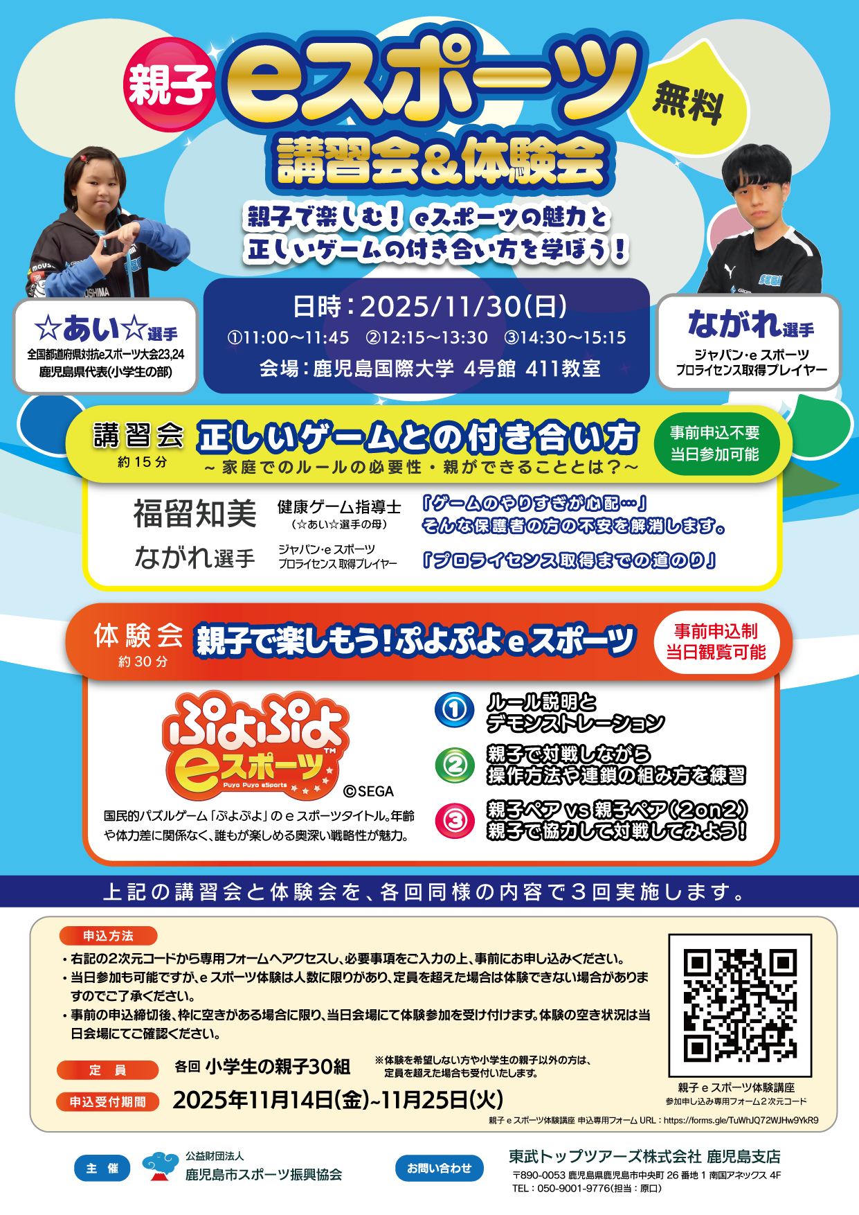 11/30(日)開催「eスポーツ講習会&体験会」🎮