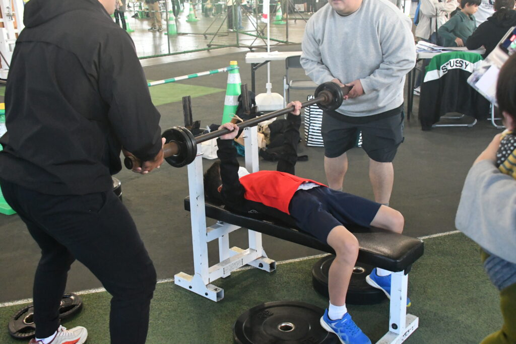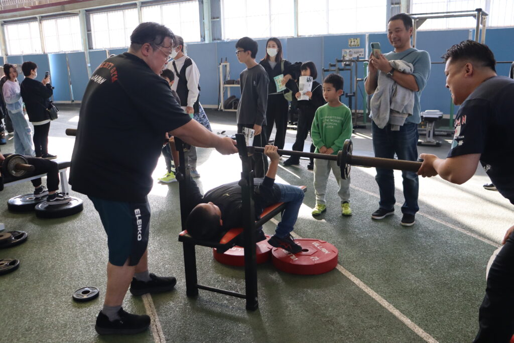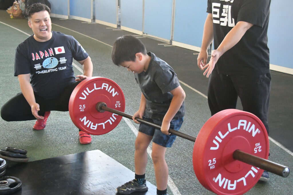 鹿児島市パワーリフティング協会の力持ちの皆さんが、バーベルの持ち上げ方を教えてくれました。💪