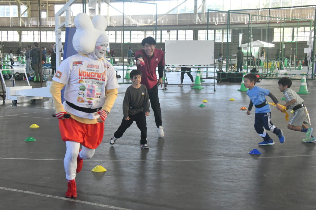 今回は、司会進行役としてMBCの松木さん、一緒にスポーツ体験をするゲストとして「じゃんけんマン」、「バルーンマン」、「じゃんけんガールズ」が来てくれました!✌