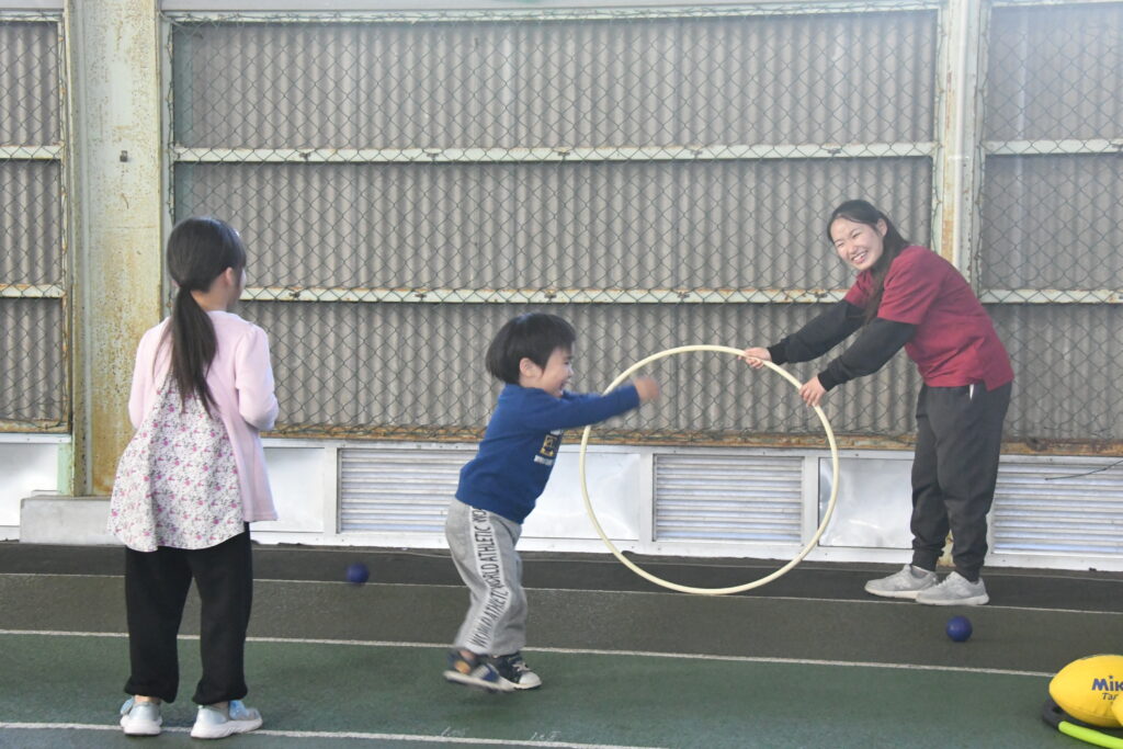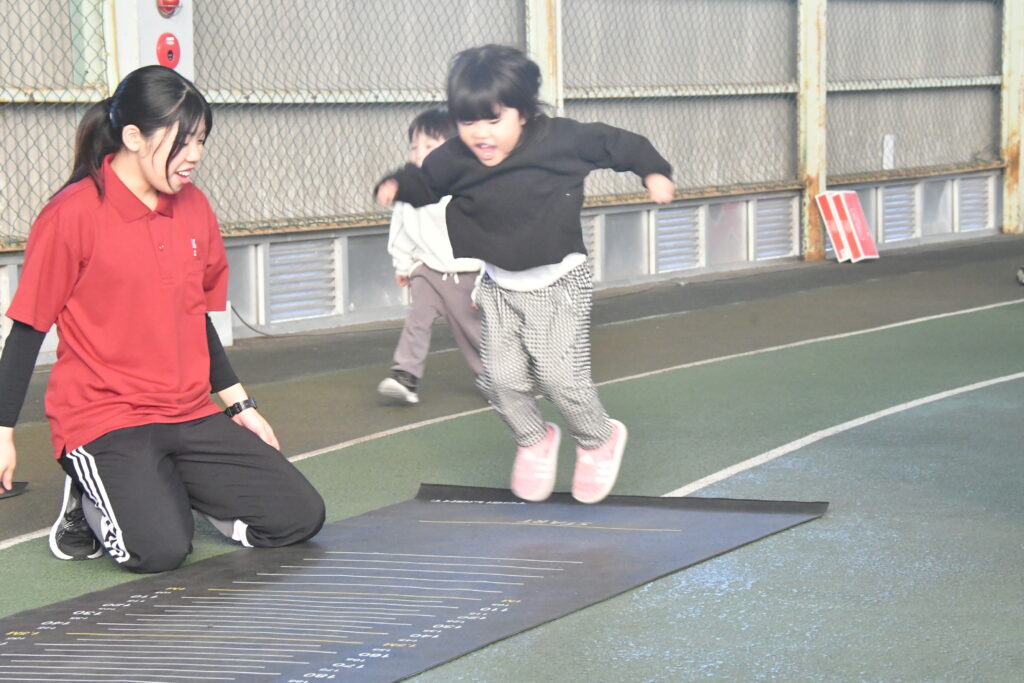 国際大学のお兄さんやお姉さんたちと一緒に、立ち幅跳びをしたり、思いきり走ったり、じゃんけんマンと遊んだり・・・にこにこ笑顔でとっても楽しい時間を過ごしていました☺🏃