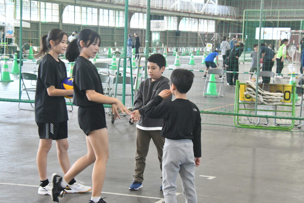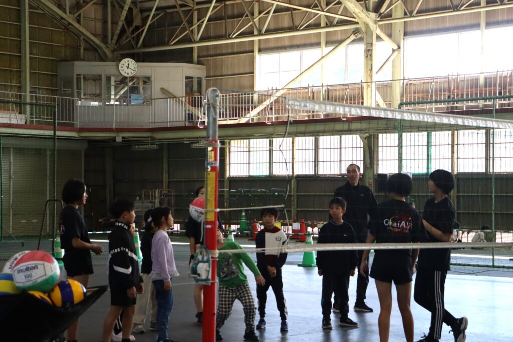 スポーツ少年団の指導者と選手のお兄さんお姉さん達と一緒に、レシーブとトス、アタックの打ち方を体験しました🏐