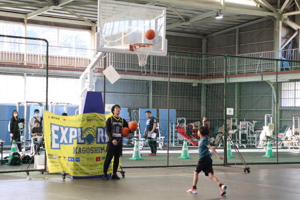 3×3(スリー・エックス・スリー)プロバスケットボールチーム EXPLORERS KAGOSHIMAの入間川(いるまがわ)選手と越猪(おおい)選手と一緒にドリブルやシュートを体験しました🏀プロ選手から直接シュートの秘訣を教えてもらって大興奮!その勢いのままフリースローにも挑戦して、全力でバスケを楽しみました!