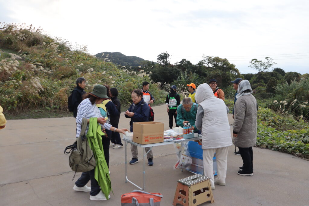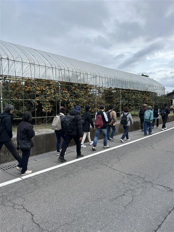 [スタート]桜島フェリーターミナル内コミュニティスペース → 月讀神社 → 長谷川遊砂地散策路 → 桜島小みかん畑 →[ゴール]桜島フェリーターミナル内コミュニティスペースイベント写真