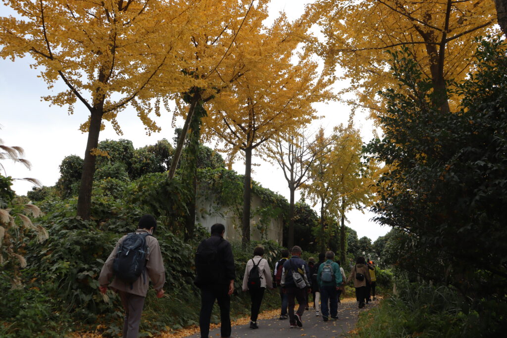 とても綺麗なイチョウ並木で折り返し